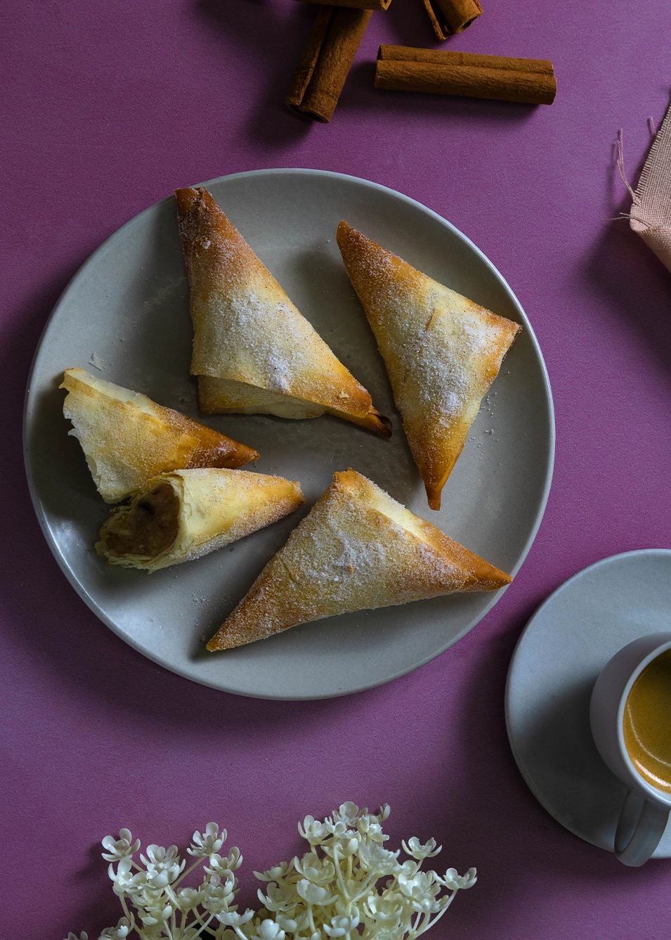 - Açúcar e canela em pó para finalizar.