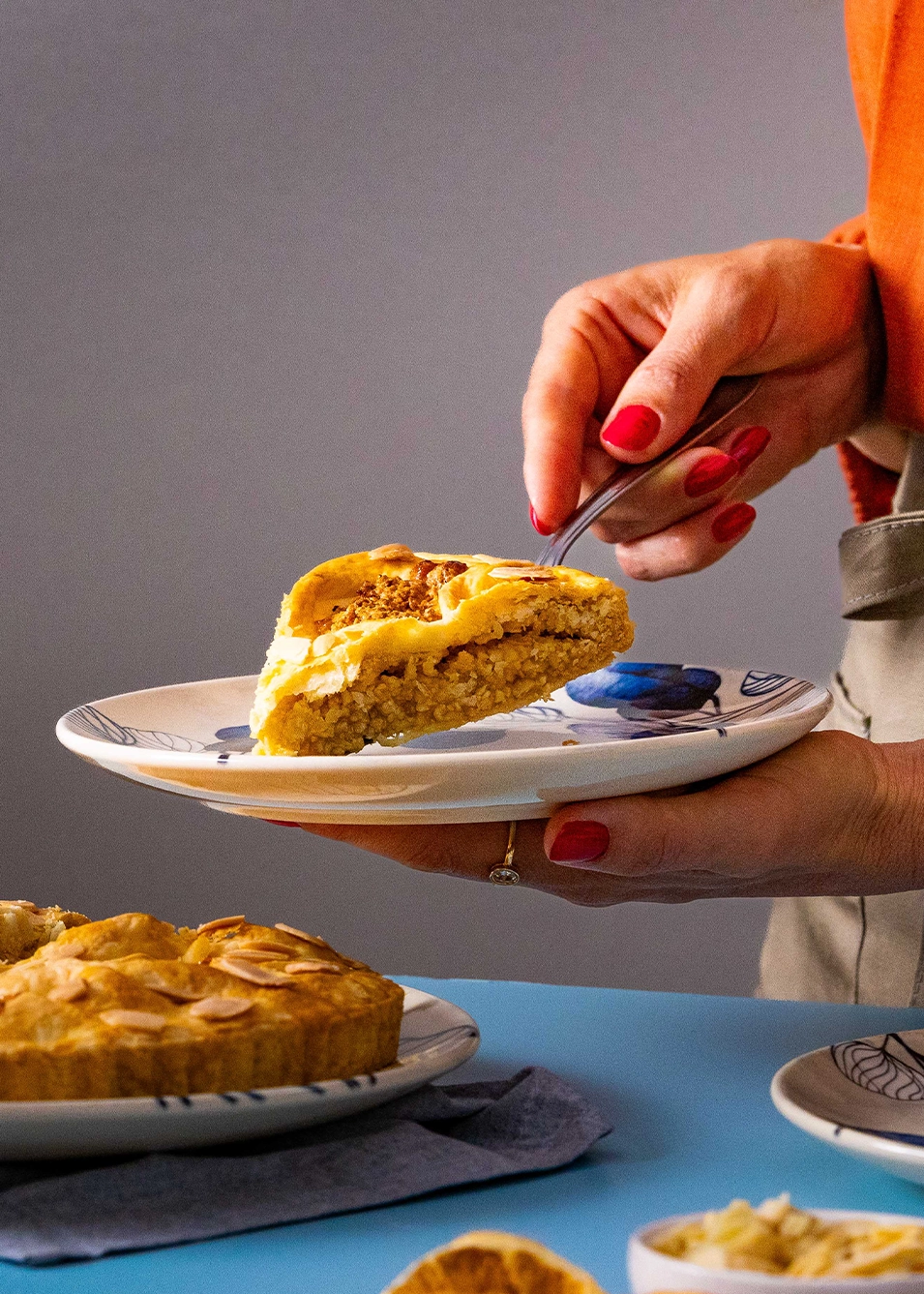 7. Pincelar com o ovo inteiro batido e polvilhar as amêndoas laminadas;